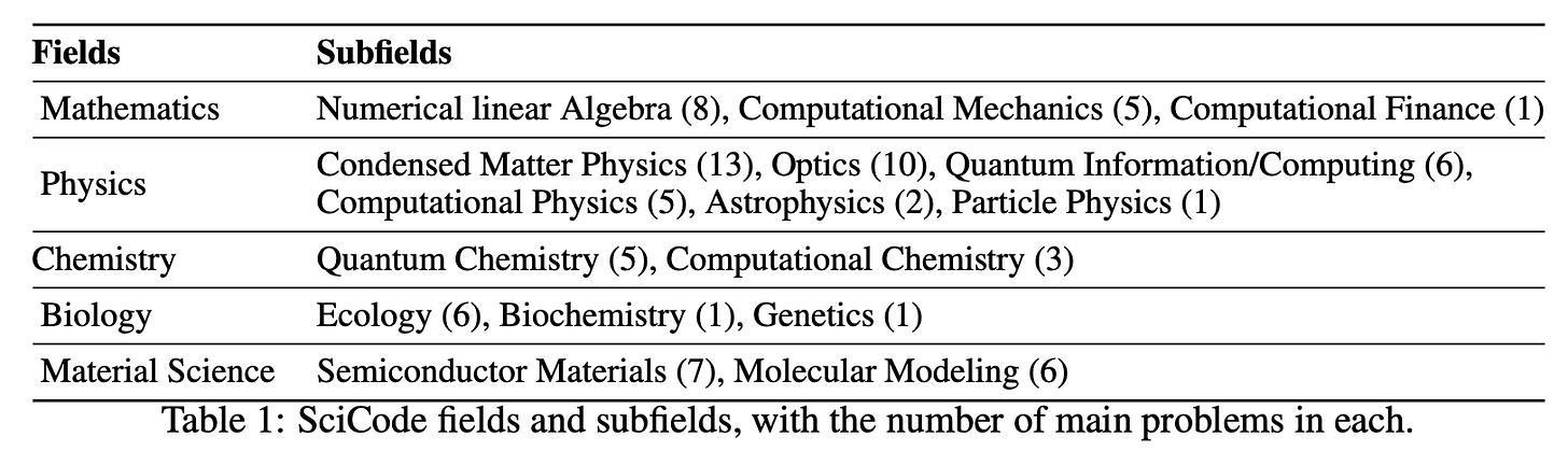 Today’s paper: SciCode: A Research Coding Benchmark Curated by Scientists. Tian et al. 18 July 2024. https://arxiv.org/pdf/2407.13168