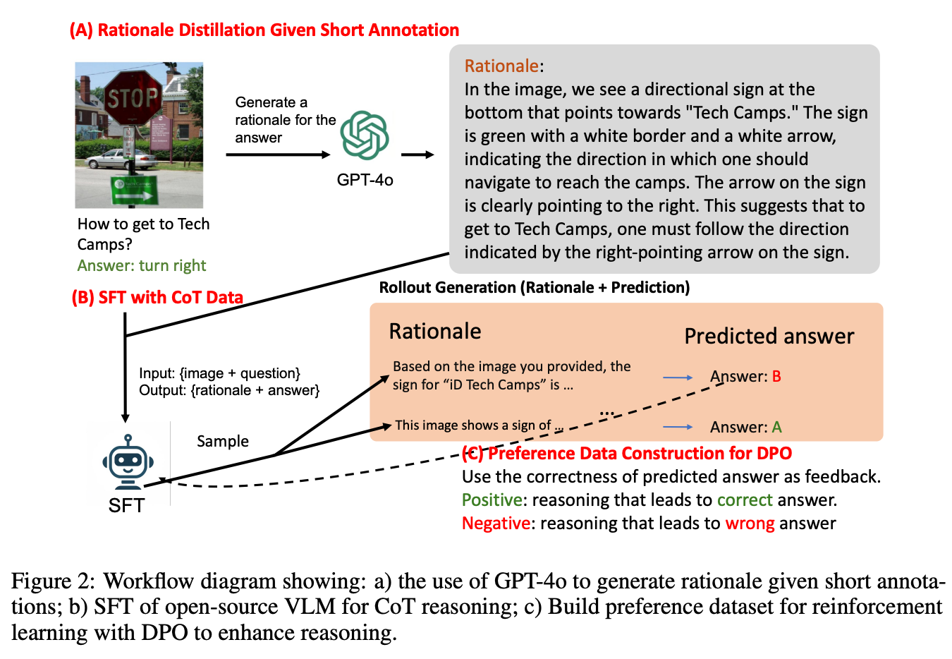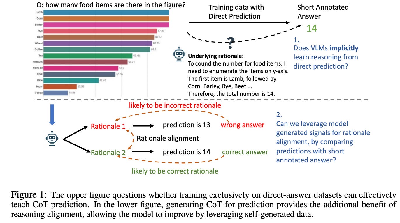 In Figure 2 below, the authors illustrate their workflow for improving VLMs’ reasoning, comprising three main stages:
